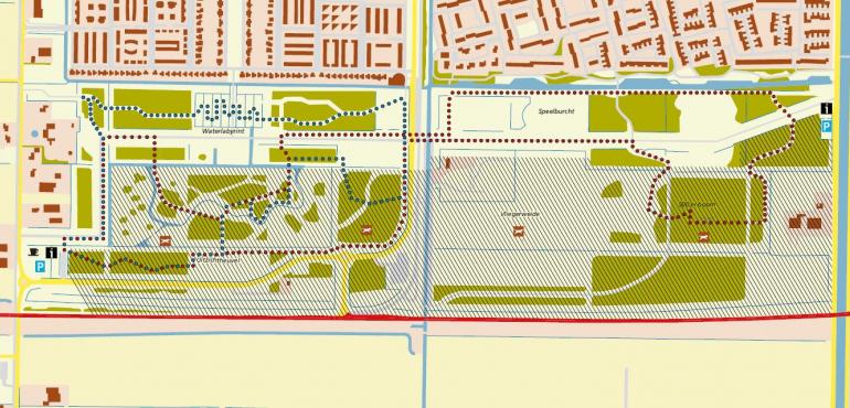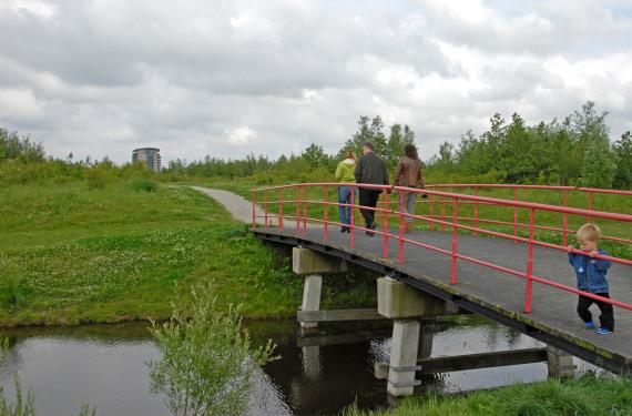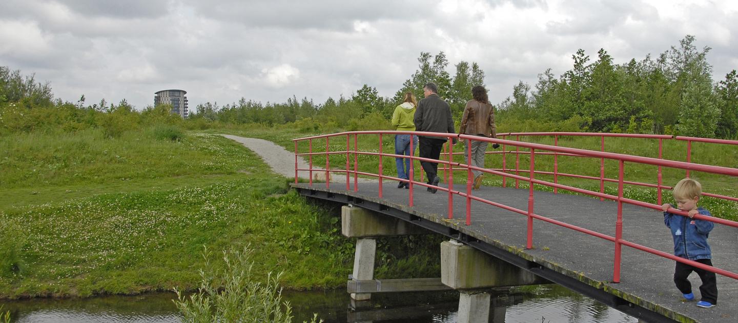 In het middengebied van het westelijk deel is het water in natuurlijkere vormen aangelegd. Na elke bocht is het uitzicht anders. Kleine hoogteverschillen maken het gebied speels en boeiend. De kinderen kunnen spelen op de grote grasvelden of op het speelveld met het waterlabyrint. Ook is er de speelburcht met wanden van vier meter hoog. Bij de oudste boom in het gebied is een picknickplek ingericht.